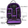 Amplios compartimentos acolchados para cámara, lentes y accesorios.
